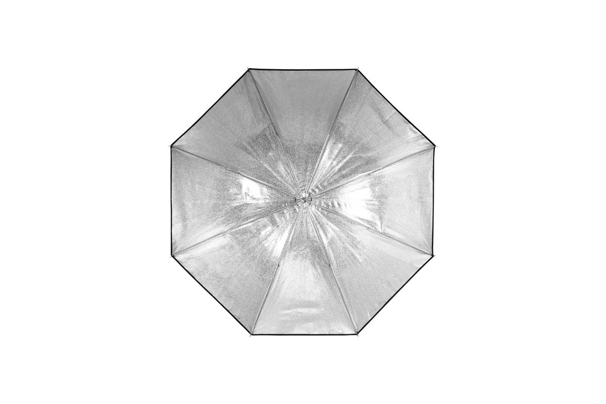 A master of portability and ease-of-use, the Umbrella Shallow is the go-to light modifier when you need a light with wide light spread. The Silver version creates a crisp, direct light with more contrast and a high light output, a little like the light you’d get from a hard reflector.